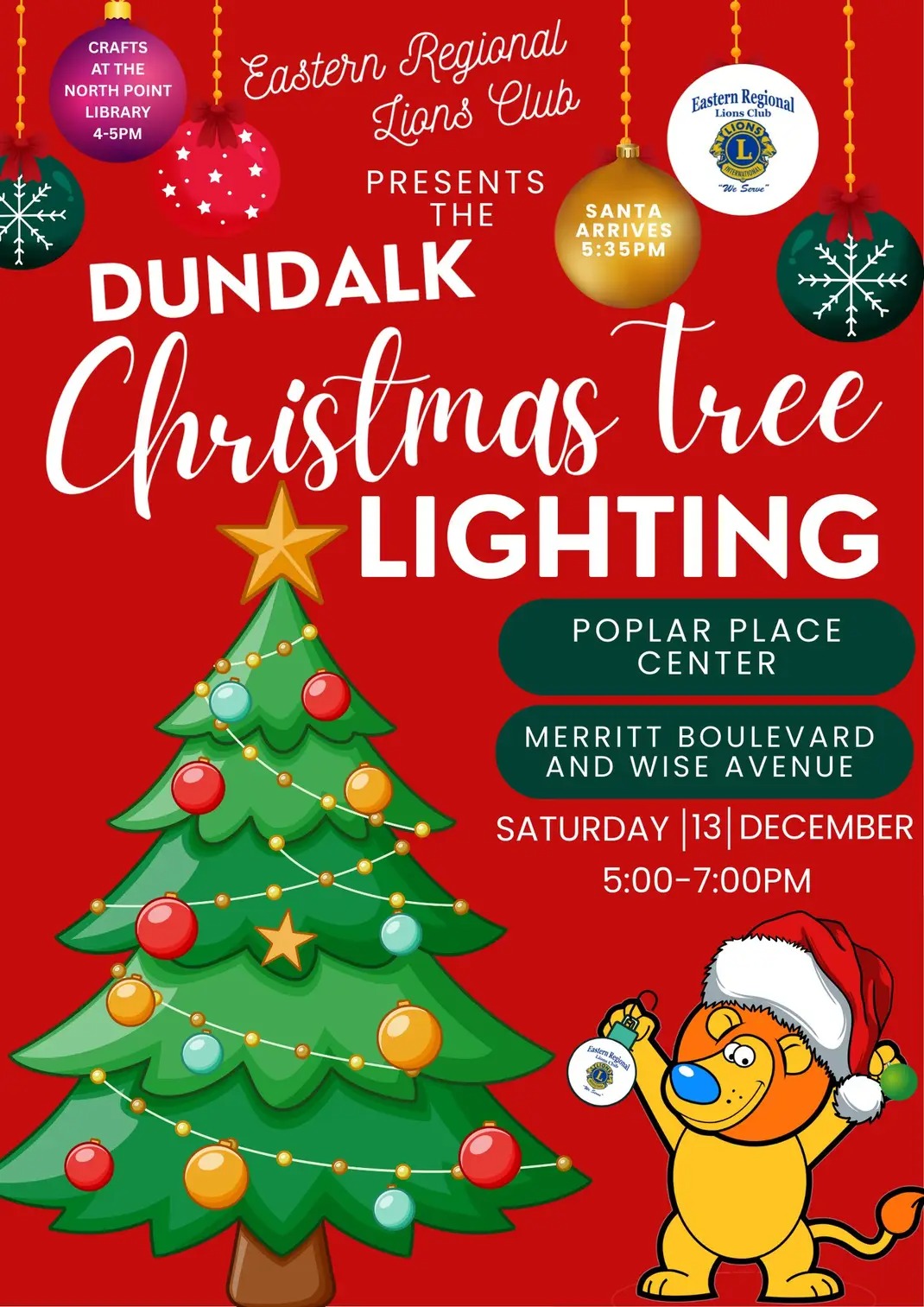 The Eastern Regional Lions Club will be hosting the 7th Annual Dundalk Community Christmas Tree Lighting at Poplar Place Shopping Center at the corner of Merritt Boulevard and Wise Avenue on Saturday, Dec. 13 from 5 to 7 p.m.