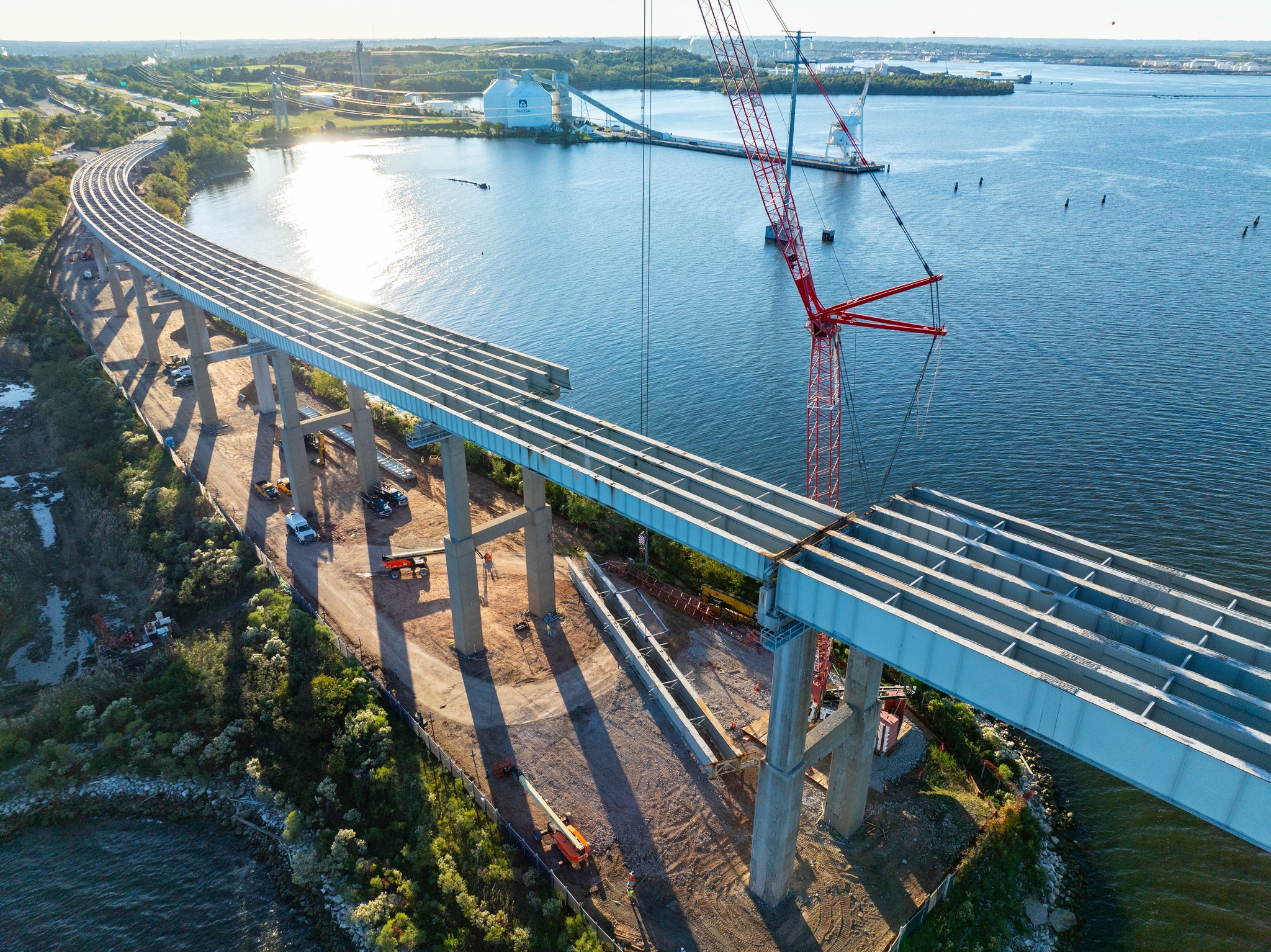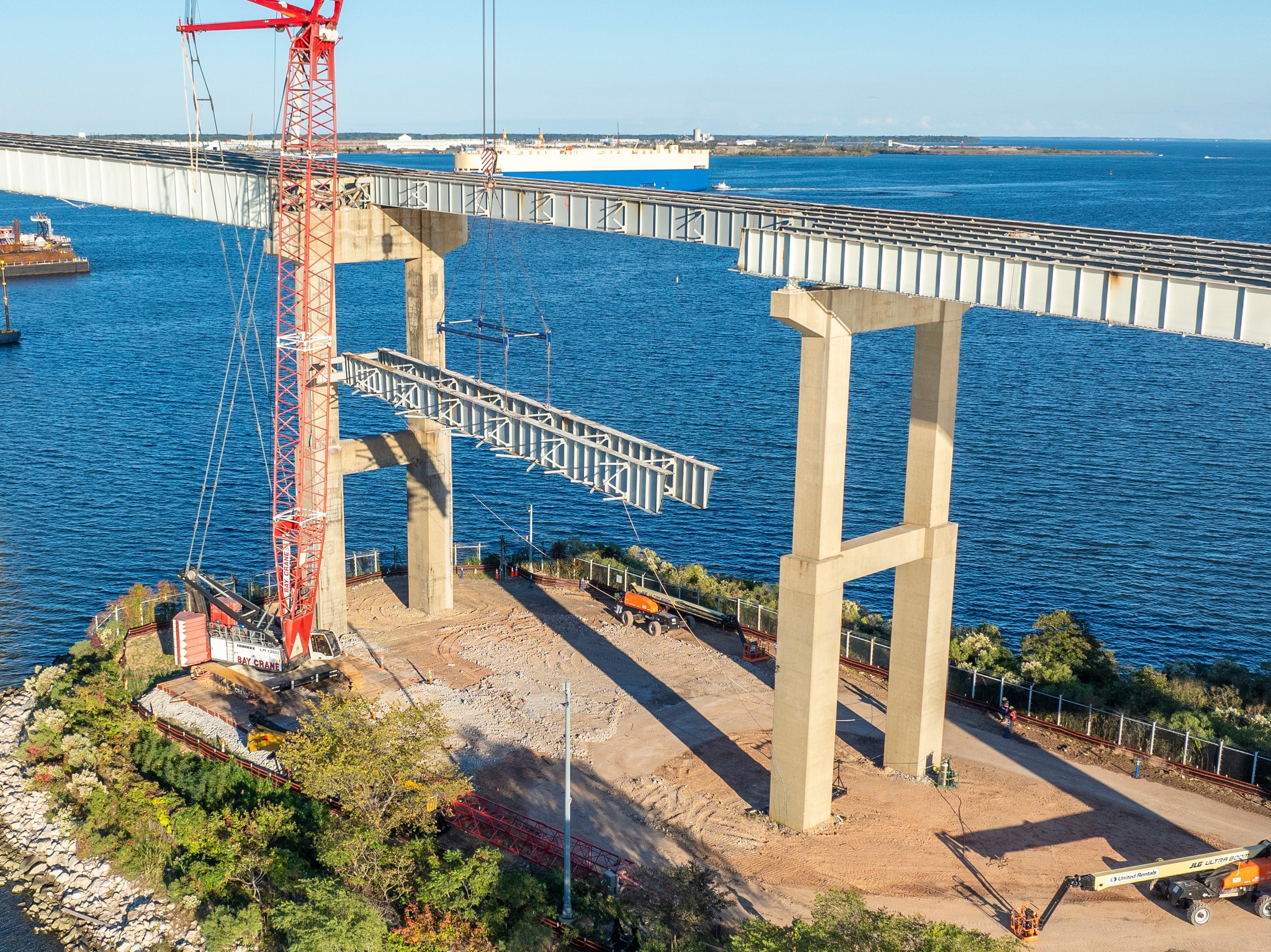 Each girder weighs approximately 50,000 pounds and is being removed by torch cutting the steel and safely lowering girders to the ground with a crane.