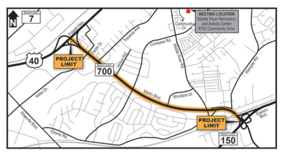 The Maryland Department of Transportation State Highway Administration will host a public informational workshop, 5:30 – 7:30 p.m. Wednesday, March 18, to provide information and gather community input on proposed pedestrian safety improvements along the MD 700 (Martin Boulevard) corridor from US 40 (Pulaski Highway) to MD 150 (Eastern Boulevard) in Middle River.