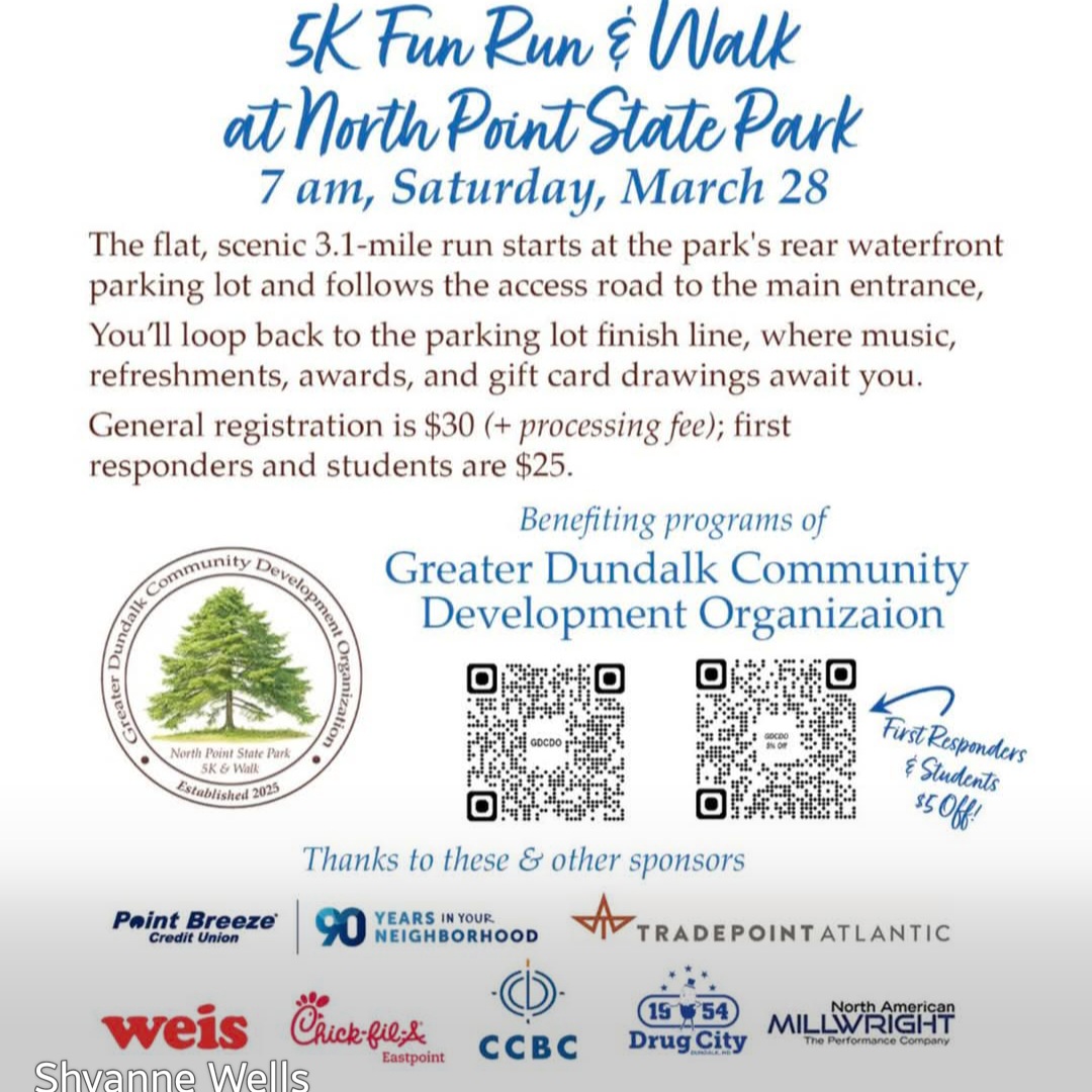 A 5K Fun Run and Walk will be heldĀ at North Point State Park on Saturday at 7 a.m.