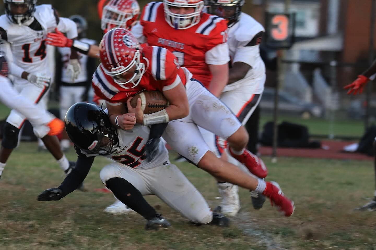 City scored touchdowns on its first three drives. Patapsco finally stopped City in the second quarter when Wilson Smith recorded a tackle on third down, and John Martin sacked City’s quarterback on fourth down.